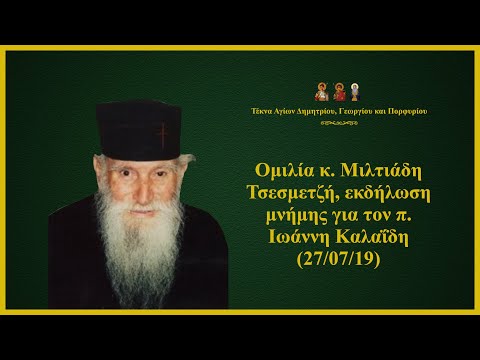 Ομιλία κ. Μιλτιάδη Τσεσμετζή, εκδήλωση μνήμης για τον π. Ιωάννη Καλαΐδη